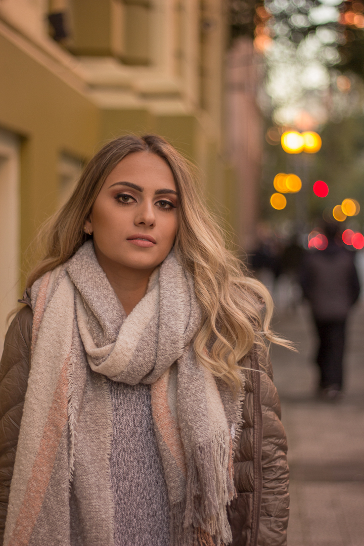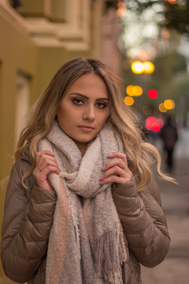 No inverno, entre o frio suave e a luz delicada da estação, cada imagem ganhou ainda mais intensidade. Os contrastes da cidade, os tons mais fechados e o ar aconchegante criaram o cenário perfeito para revelar sua presença marcante e natural.