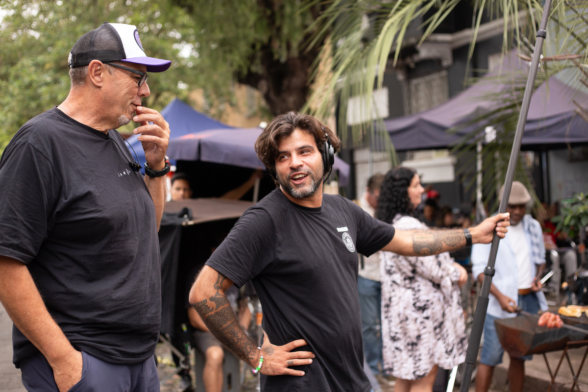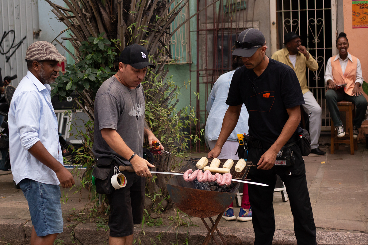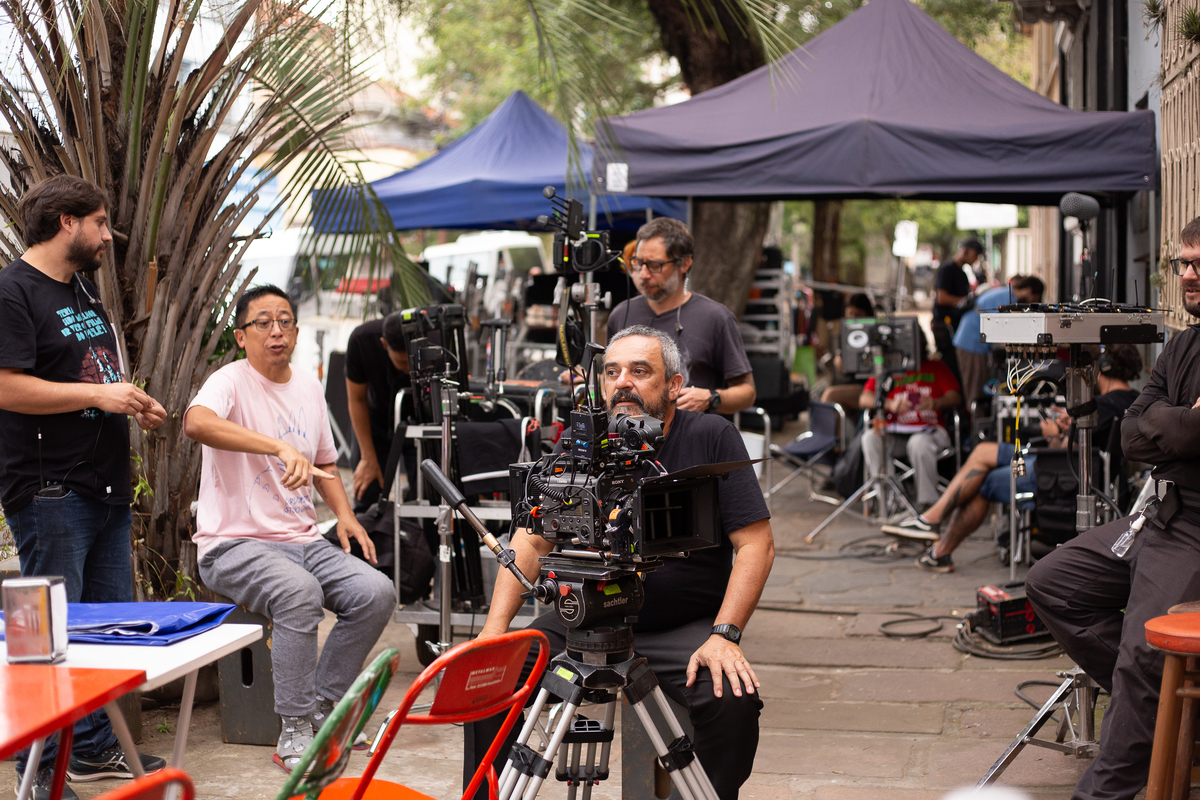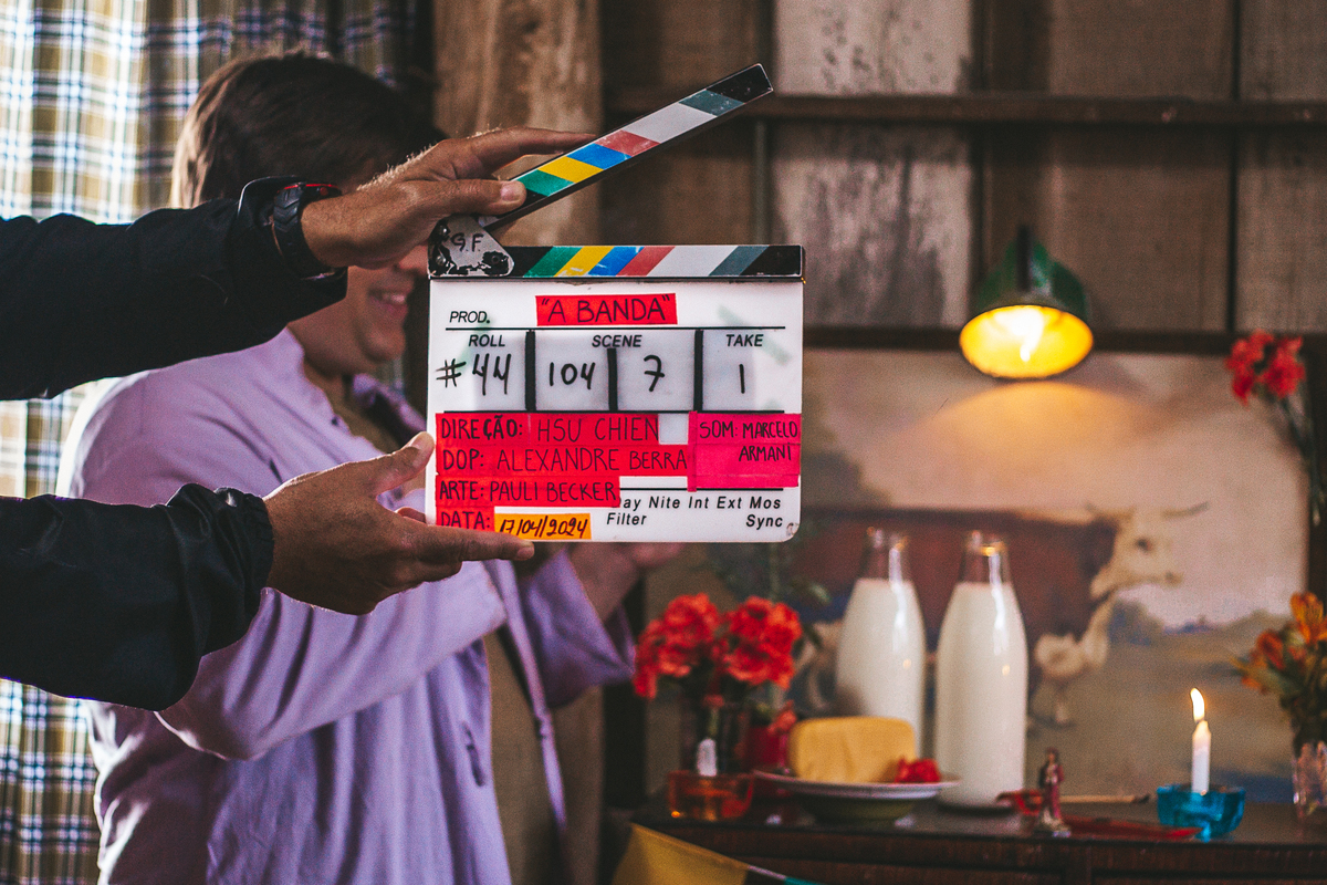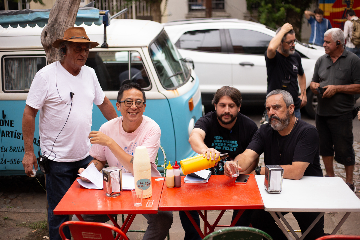 Fotografei os bastidores do filme nacional A Banda, com atores e diretores de SP e RJ que vieram para cá, Porto Alegre, filmar em várias locações.